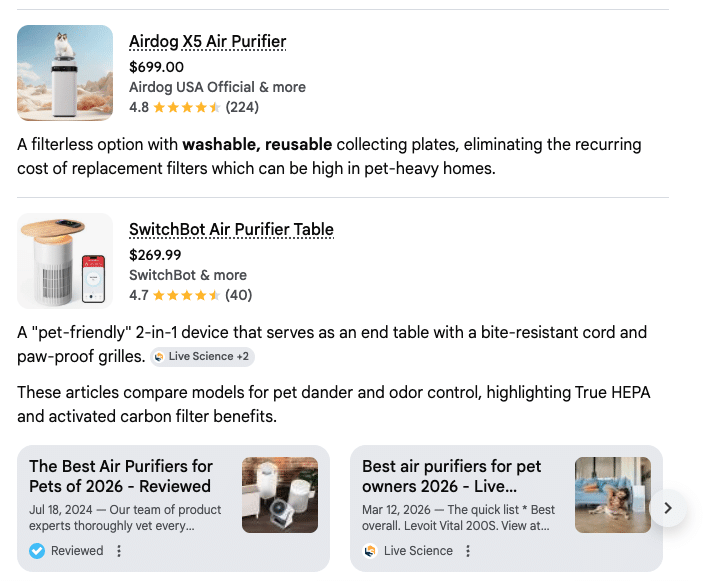 But before you break out the duct tape, it’s worth considering the trade-offs. While a DIY air purifier like the Corsi-Rosenthal Box can help reduce airborne particles, it’s not specifically designed for pet owners. For example, unless you add a carbon filter, it won’t do much to tackle pet odors or volatile organic compounds. Even with a carbon filter, the odor removal won’t match what you’d get from a commercial air purifier built for pets.