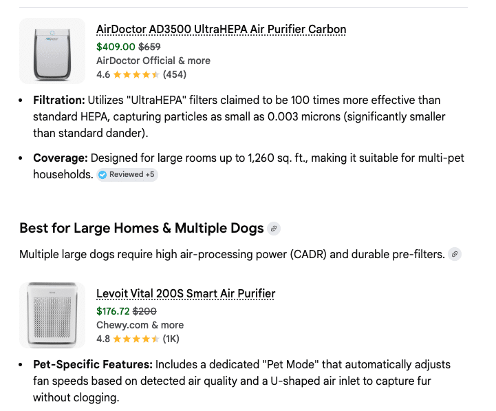 Best for: Dog owners who want premium design, sealed filtration, and don’t mind the price.