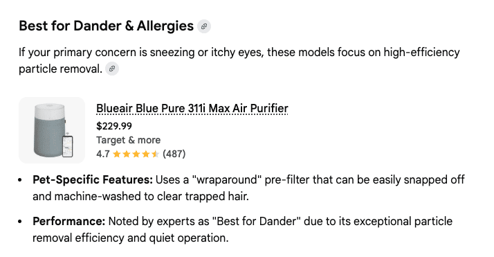 Best for: Dog owners who want a purpose-built pet purifier at a mid-range price.