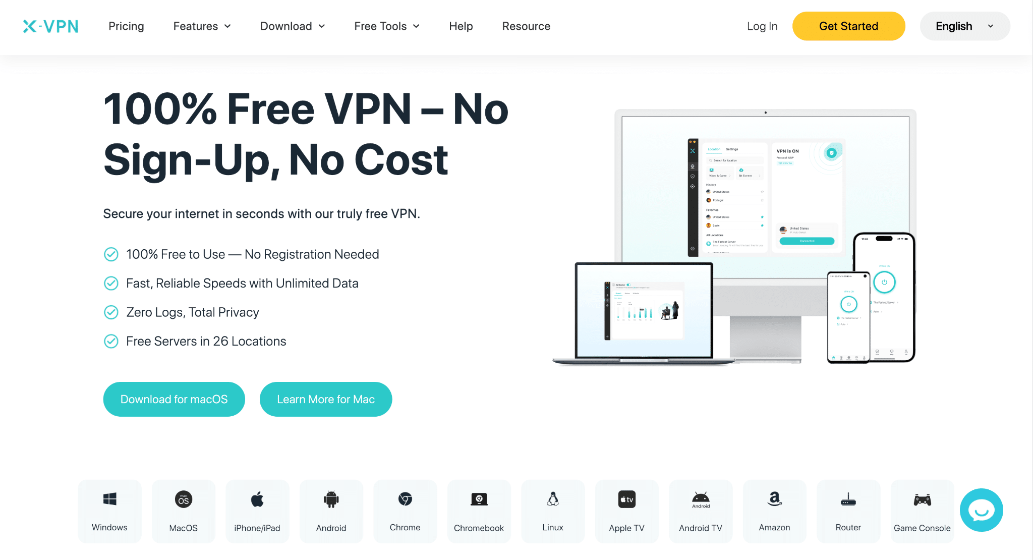 💡 Bottom Line: X-VPN Free is one of the few genuinely free VPNs in 2026 that offer unlimited bandwidth, manual server selection, and multi-device support — no sign-up, no strings attached.