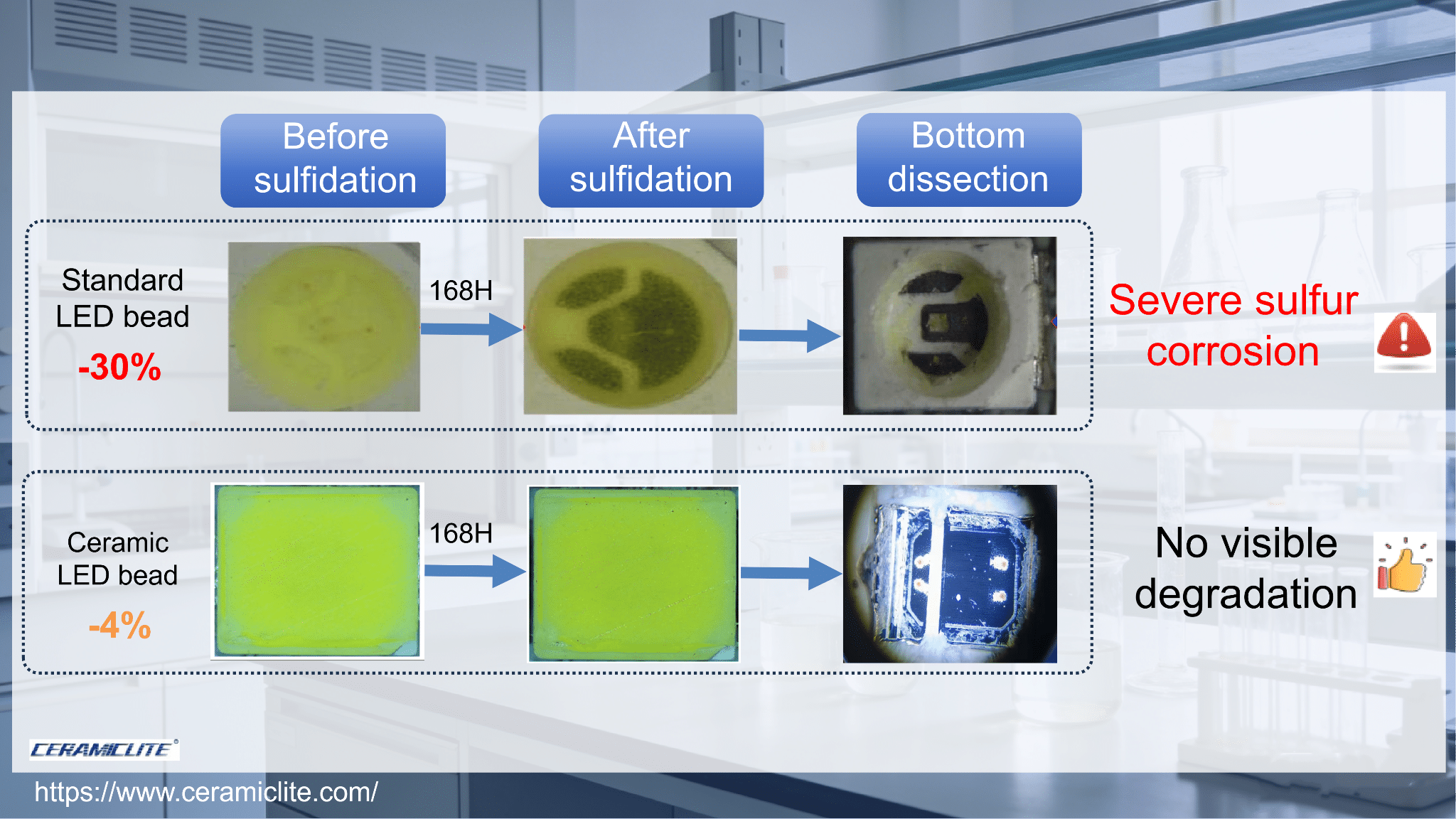 Ceramiclite’s FTC technology demonstrates that advanced materials science can deliver order-of-magnitude improvements in real-world performance: <5% light loss over 100,000 hours, 50x lower thermal resistance, and immunity to corrosion that destroys conventional packages.