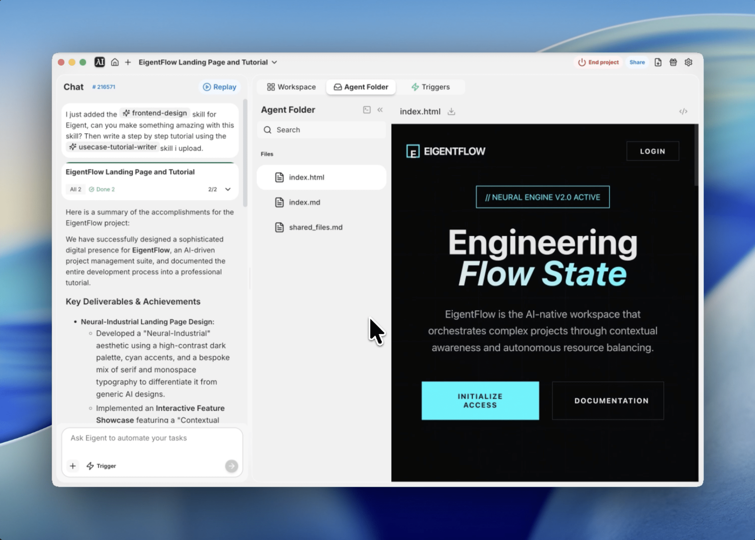 Eigent approaches extensibility through two systems that work together: Skills and Triggers.