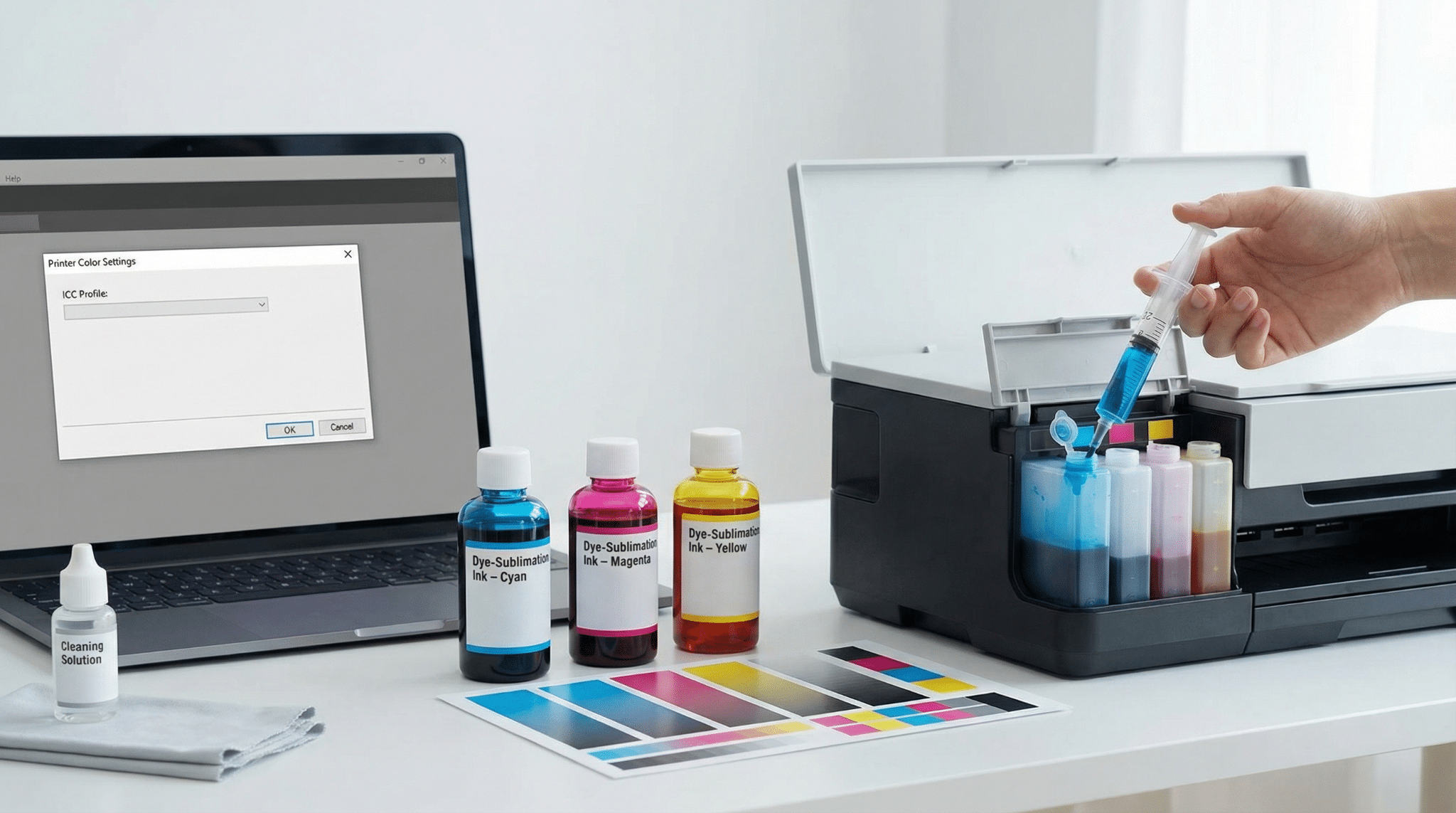 - DIY color management. Install the ICC profile from your ink vendor, print test charts, and tweak reds and blues until they match the screen. Plan one or two evenings for calibration.
