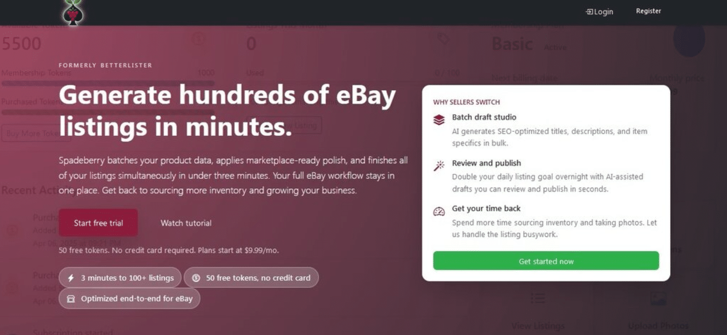 Spadeberry is a vivid example. It is an AI-powered listing automation tool designed for eBay sellers. It can generate 100+ refined listings in less than 3 minutes! This tool seamlessly refines titles, descriptions, item specifics, conditions, pricing research, and other category details. Increasing daily listing output affects the long-term business growth the most.