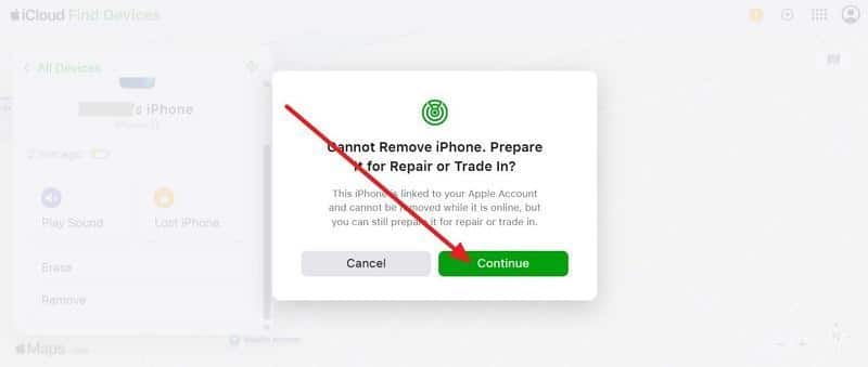 Step 2. Press the “Continue” button to remove the Activation Lock.