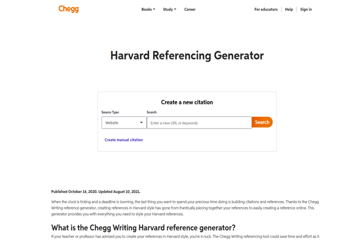 The generator is straightforward: users select the source type and input the relevant information. Chegg then formats the citation according to Harvard guidelines. While perhaps not as feature-rich in “smart organization” as Koke AI, it effectively handles the core task of citation creation. This focus on fundamental functionality makes it a solid choice for straightforward referencing needs.