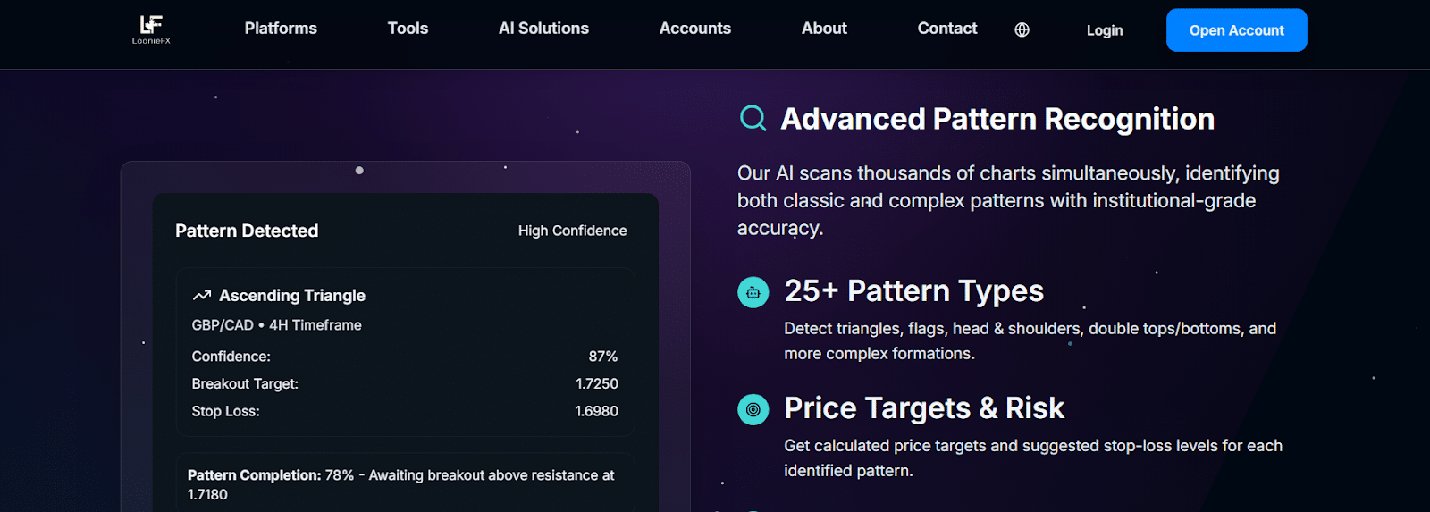 Markets repeat their behavior often. The trick is spotting the pattern early. LoonieFX’s pattern recognition tool does that automatically.