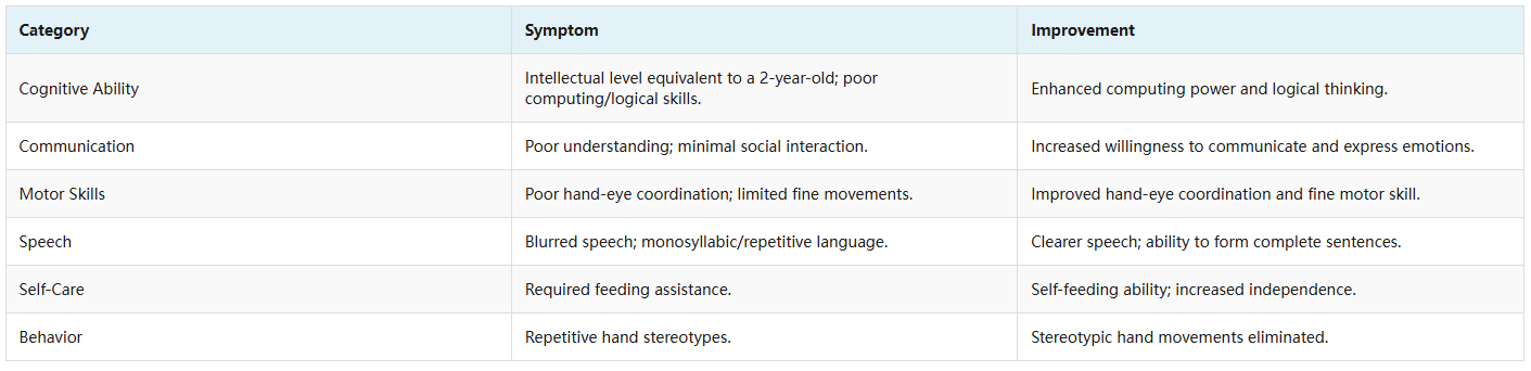 4. Improved Oxygen and Blood Flow – In some autistic children, brain regions lack proper oxygen or blood supply. Stem cells enhance microcirculation and promote new blood vessel formation (angiogenesis), improving overall brain function.